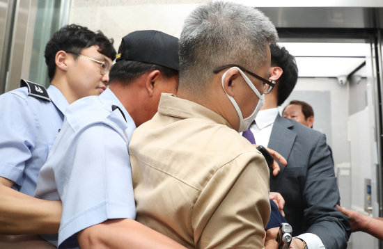 ‘드루킹’ 김동원 씨가 2018년 6월 28일 댓글 조작 의혹을 조사받기 위해 서울 서초구 특검사무실로 출석하고 있다. [사진공동취재단]